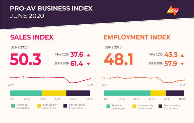 專業(yè)AV商業(yè)指數(shù)報(bào)告來自對(duì)AVIXA Insights社區(qū)的每月調(diào)查,該社區(qū)是行業(yè)成員的研究社區(qū),跟蹤商業(yè)AV的業(yè)務(wù)趨勢。該報(bào)告實(shí)際上包括兩個(gè)擴(kuò)散指數(shù):AV銷售指數(shù)(AVI-S)和AV就業(yè)指數(shù)(AVI-E)。在每種情況下,指數(shù)均高于50表示銷售或就業(yè)活動(dòng)有所增加。