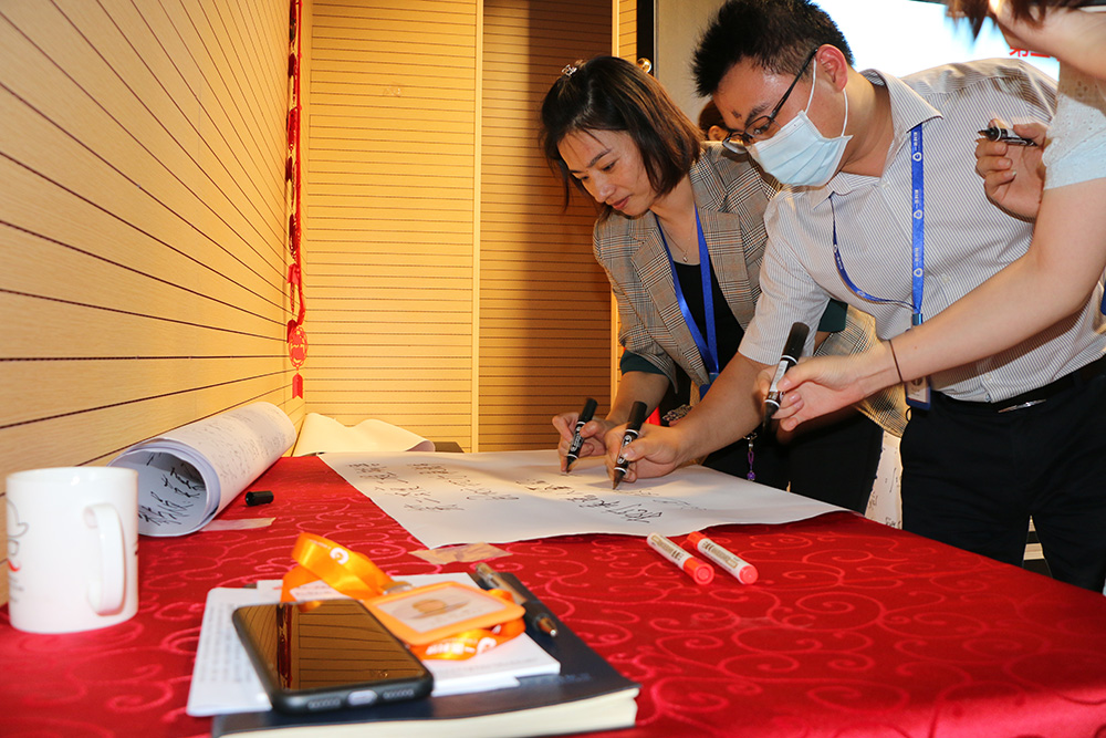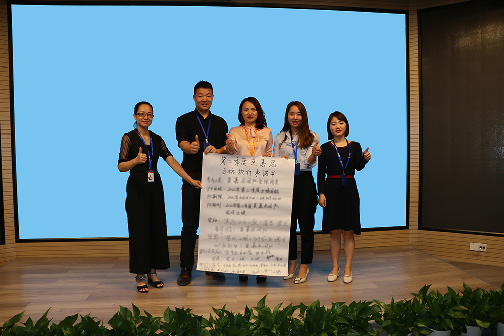 在宣讀第二季度目標(biāo)執(zhí)行承諾書的內(nèi)容之后,渠道銷售部和工程銷售部的銷售精英以及支持他們的同事在第二季度目標(biāo)執(zhí)行承諾書上簽字,從簽名的數(shù)量上可以大致看出大家對(duì)這兩個(gè)團(tuán)隊(duì)第二季度的未來(lái)可期。